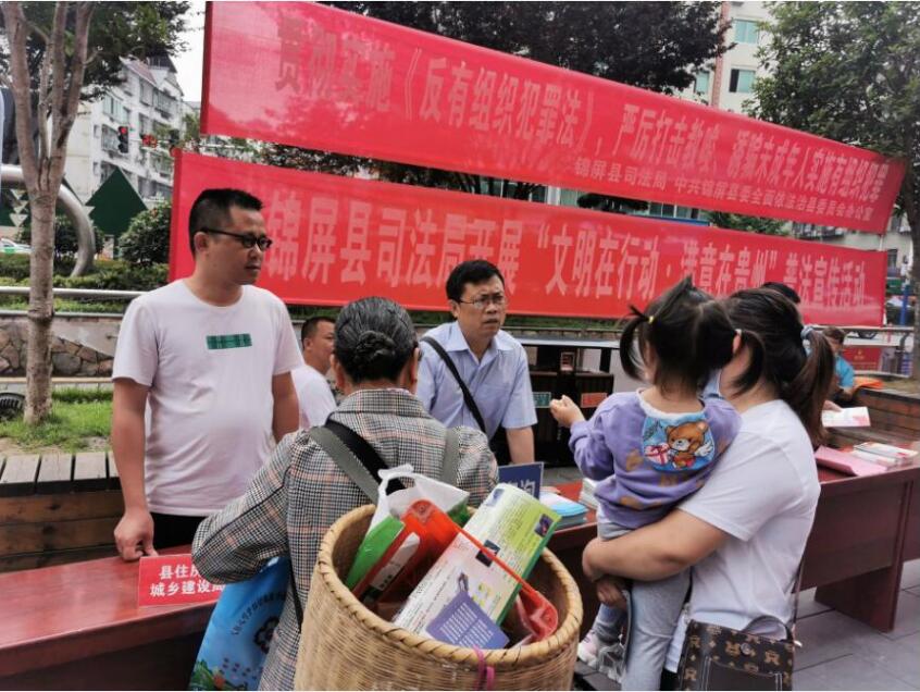 法讯网讯(通讯员 姜萍)6月6日上午,锦屏县司法局在三江镇天马广场开展了以“共建清洁美丽世界”为主题与“文明在行动·满意在贵州”相结合的法治宣传教育活动,进一步贯彻落实习近平法治思想,大力宣传倡导民法典中“民事主体从事民事活动,应当有利于节约资源、保护环境”的绿色环保原则,推动普法宣传教育深入人心。 此次活动,为群众解答法律咨询10余人次,发放法律宣传资料200余份。促进绿色环保法治理念深入人心,增强群众自觉保护生态环境意识,为生态环境依法治理工作奠定基础。 |