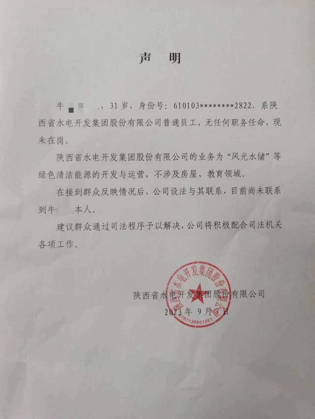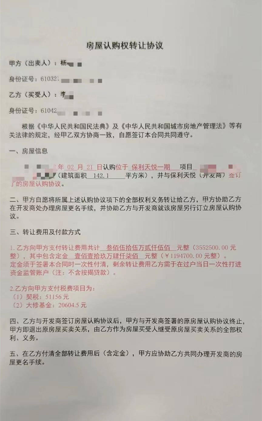 近日,多名身处陕西西安的市民向红星新闻爆料,称自己买房被骗,“中介(中间人)说有领导内部低价房售卖,他们可以帮忙操作,从交定金,给认购书,到网签都有正规协议,就是给尾款的时候以各种理由,没让我们打进监管账户,而是走了私人账户,从而导致房子一直无法过户。”这些受害者发现,他们的遭遇背后都涉及同一个人——陕西省水电开发集团股份有限公司前员工牛某。 据西安市公安局高新分局9月26日发布的警情通报显示,经查,以牛某为首的犯罪团伙通过虚构有“低价房、内部房”出售,骗取群众购房款。目前,该局已经立案,11名犯罪嫌疑人被采取刑事强制措施,同时在全市范围内对该犯罪团伙其他犯罪线索开展全面排查,案件仍在进一步侦办中。 ▲警情通报 被骗 2022年下半年,家住西安市的李先生将自己原有的房子卖掉,打算在金泰·新理城小区附近购置一套住宅,方便今后的生活。当年10月,李先生在该小区附近一家名为“诺家”的中介门店处了解到,该店有西安某企业领导的转让房,可以低价出售。 “门店中介杨某乐说,他们手上有保利签约的领导代持房,当初开盘时是1.8万元一平方米,现在可以2.5万元一平方米卖给我,只是其中要拿7000元一平方米的中间费给领导。”李先生说,当时他查过网上的市场价,大约在2.9-3万元一平方米,因此他有所怀疑。但杨某乐再三表示,自己是正规门店,还拿出一些已经过户的案例给他看。 2022年12月29日,在看房后,李先生先后将30万元定金转给了杨某乐,并拿到一份“定金协议”。在“定金协议”上,红星新闻记者看到,甲方为杨某乐,乙方为李先生。协议表明在2022年12月29日甲方收到乙方购买西安市高新区保利天悦小区3期某室的定金20万元。另外,协议还注明,若乙方对房屋无异议,则定金不退还,2022年10月12日所收的定金10万元为该房屋的信息费,总共累计收取乙方30万元。 ▲李先生提供的定金协议 “大概过了2个月,杨某乐告诉我说现在领导名下的房子已经腾出来了,可以进行网签了。”李先生说,当时一个名叫牛某的女子自称是杨某乐的领导,不仅让他签署了一份“转让权协议”,还安排他与真正的房主见过一次面,“但牛某说那个人并不是房主,只是房东代持人,他们之间有秘密协议,见了面让我不要说任何话。因此我当时什么也没说,就和对方见面,开了监管账户。” 据李先生提供的“房屋认购权转让协议”显示,甲方(出卖人)同样为杨某乐,乙方为李先生。协议表示,甲方于2023年2月21日认购位于保利天悦一期的某房屋,并与保利天悦(开发商)签订了房屋认购协议。甲方自愿将所属上述认购协议项下的全部权利义务转让给乙方,甲方协助乙方在开发商处办理房屋更名手续,并协助乙方与开发商就该房屋另行订立房屋认购协议。 ▲李先生提供的房屋认购权转让书 李先生表示,在签署“房屋认购权转让协议”后,他又转给杨某乐96万元,而这96万元是所谓给领导个人的差价。“我在网上查到自己的网签信息后,我就打算转首付款进监管账户,但这时候他们告诉我暂时不要往里面打钱。”李先生说,杨某乐、牛某一直表示钱不能转进监管账户,得让领导相信,“经过他们的再三‘纠缠’,我就将首付款的85万元转给了杨某乐,然后拿到了他们给我的提前支付付款合同。同时他也承诺我会在(2023年)5月左右完成过户。” 但李先生从2023年5月一直等到7月,始终无法过户。“中间我曾追问过对方,但牛某给我发了几张伪造的陕西投资有限公司内部的流水,让我以为钱已经被内部安排上了。”李先生说,他等到7月再也按捺不住,牛某再次联系上他,说第二天就可以过户,但需要马上给尾款,“我给了78万元的尾款后,牛某说第二天下午3点会收到短信,我也确实收到了一条监管账户已进账的信息,但后来我和真正的房主去查询的时候却发现,里面根本就没有钱。” 意识到自己可能被骗后,李先生多次联系牛某,对方却告知他房款现在暂时退不出来,“她说钱被陕投给抽回去了,因为那边的项目比较急。”另外,牛某还给李先生出具了一份“承诺函”,上面写明牛某因暂时无力退还李先生因购买保利天悦一期×××室而支付的289万元及房东诉求的违约金,所以将自己母亲梁某名下的某处房产暂时抵押给李先生。并承诺若2023年9月1日前再不能支付,此房将无条件归李先生所有。 ▲牛某出具给李先生的承诺函 报警 久等无果后,2023年9月7日,李先生选择了报警。同时,李先生也通过警方等方式得知还有多人与他情况类似,均被牛某等人骗取了大量房款。 ▲李先生提供的报警回执 “我也是通过中介说有领导内部房可以低价买,然后一通操作下来,被骗近296万元。”西安市民王先生告诉红星新闻记者,他原本在当地是有一套房产的,2022年2月因想在同小区置换一间大点的房子,通过朋友介绍认识了中介李某。 王先生说,当时他在小区里看了一套同户型的“领导低价房”后,便支付了20万元定金给李某,后来对方又出具了一份“认购书”,他又支付了30多万元。等到2022年6月份该出网签信息时,他发现自己的贷款怎么也办不下来,“我当时买这套房子的总价大概是270多万元,然后我贷款65万元,所以我往资金监管账户打了195万元,但去贷款的地方办业务时发现那套房子没有相关的产调,所以一直办不下来。” 据王先生回忆,当时牛某自称是房主的媳妇,一直以各种理由推脱,表示无