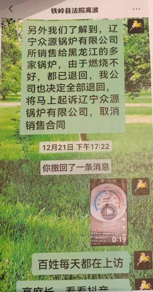 | 黑龙江民生企业投诉被辽宁法院违规查封引发群体事件 日前,法讯网收到了黑龙江宝清县衡兴秸能热力有限公司法人王艳平发来的求助信,反映公司在毫不知情的情况下被辽宁铁岭县人民法院将公司的三家银行账户各自查封1900多万后,无法购买供热燃料及无法正常经营而引起大批居民到政府部门上访并上传至抖音、快手等平台,造成极坏影响…… 法讯网全文发出求助信,小伙伴们有什么看法? 求助信 中央媒体: 我是黑龙江省宝清县衡兴秸能热力有限公司法人王艳平,身份证号码:230521197403032****,电话号码:18904691*** 我公司是为黑龙江宝清县3万多户居民供热的民生企业,于2023年11月13日被辽宁众缘节能锅炉有限公司在双方债务并未确定实际数额的情况下,以欠款为由恶意起诉至辽宁省铁岭县法院,并查封我公司三个银行账户各自1900多万元。该院在未对案件实体审查的前提下受理此案,并查封我公司账户近6千万元。 ![]() 对方起诉请求1100万元,法院却查封了建设银行的1920万元,还查封了邮政银行、农行账户各自1900多万元! 该院未下达裁定书,在11月27日我公司在购买原煤时发现账户被冻结并向银行询问原因时,银行回复是辽宁省铁岭县人民法院查封后,我们通过拨打12368查询案件主审法官黎正云法官办公室电话询问查封原因,询问后才通过短信方式给我公司下达起诉状,我公司法人王艳平询问为什么对我公司银行账户查封十天后也未通过任何形式告知我公司及我本人,经过公司法人询问,法庭黎法官回答我庭工作人员少,未能及时通知望理解,我本人认为法庭在受理此案过程中不作为、慢作为,程序有失公正。我公司向具体审理此案的该院腰堡法庭申请提供解除担保申请书,并提供了本企业价值五千余万元的资产评估报告书做担保,黎正云法官当时同意要求我方提出书面替换保全申请,高波庭长不同意替换保全申请,未被允许,后又向法庭申请由具有资质且在全国及辽宁省都有成功担保案例的担保公司对我公司账户进行反担保时,高波又以原告方不同意为由拒绝。原告保险公司可以担保,我公司提出用有资质的并有成功反担保案例的担保公司进行担保,多次跟高庭长沟通企业无法经营,热用户上访事件,高波庭长未理会。请问法庭是听原告还是听被告,这种说词能公平公正吗?根据最高人民法院出台的【民事诉讼法】第一百零七条规定:“财产纠纷案件,被申请人提供担保的,人民法院应当裁定解除保全”。该法条的法律释义:规定在征求原告方意见时,只需要履行告知程序,而非必须原告方同意。 而该庭正是以原告方不同意为由拒绝,导致我公司现无任何资金。 ![]() 极寒天气因查封无法保证温度,导致大量居民上访视频截图 购买供热燃料及无法正常经营,供热锅炉也无法正常运行,面临停热局面,近期黑龙江省极寒天气夜间气温达到零下-30~-34℃,因无燃料,当地居民室温只有零上5~10℃,居民生活苦不堪言。大批居民到政府部门上访并上传至抖音、快手等平台,给当地政府及我公司造成极坏影响,已被省住建厅通过视频会议通报,被双鸭山市住建局约谈,现恳请有关部门尽快落实12月15日习近平主席提出的保供暖、保民生的讲话。 高波庭长于辽宁众缘节能锅炉有限公司法人杨武英关系密切,影响司法公正。杨武英多次示意我本人在当地官司永远打不赢。 ![]() 经过本人多次向法庭催要判决结果才于2023年12月28日收到了2023年12月26日生效的电子版判决书。2023年12月26日铁岭法院执行庭两位工作人员到宝清县中国人民建设银行宝清支行降低查封额,由原查封1920万元降低为1100万元,部分解除了820万元。 希望中央媒体给予关注,曝光不作为、慢作为的庭长高波,法官黎正云。希望法律给予公平公正,别带有歧视外乡人的判决。 以上所述全部属实,如不属实本人承担全部法律责任。 求助人:王艳平 宝清县衡兴秸能热力有限公司 2023年12月28日 ![]() 据衡兴秸能热力有限公司查了一下,这个众缘节能锅炉有限公司在辽宁有50多起案件,基本上都是在这个法庭,且都是胜诉。而本案众源公司起诉标的额为1100万元,但法院却查封了衡兴秸能热力公司的几个银行账户达几千万元,导致公司无法运营而造成恶劣的影响,如此损失谁来承担责任?! 而对于本案的一审判决,衡兴秸能热力公司表示会上诉以维护自己的合法权益。 本网将继续关注此事的后续情况。 在只解封了800万元后,公司法人再次联系黎正云法官,在12月29日的通话录音,听听吧?! |