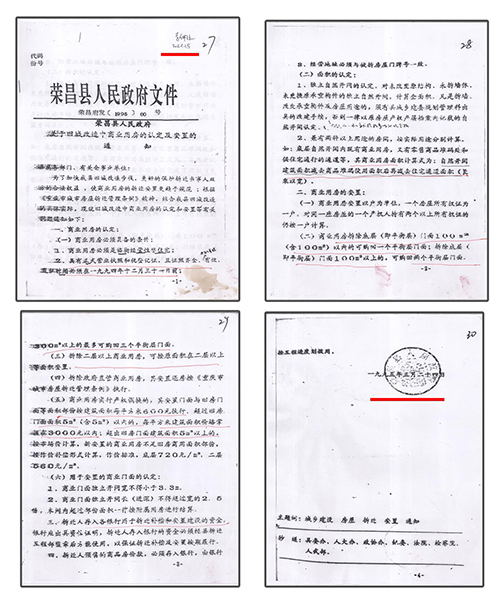 “拆迁工程部根据《现场查勘表》计算面积为498.24㎡,我算出来的结果又是507.18㎡,最终认定有效面积为507.83㎡。”梁太英说,荣昌区住建委信访回复拆迁范围内房屋产权证证载面积只有498.24㎡的数据与事实不相符。原县房管局根据荣昌府〔1995〕60号、〔1996〕96号文件及该片区补偿安置方案相关规定认定拆迁有效面积507.83㎡(住宅259.83㎡、营业16.23㎡、非住宅231.77㎡),双方计算出来的结果仅相差0.65㎡,并未按照文件补偿。