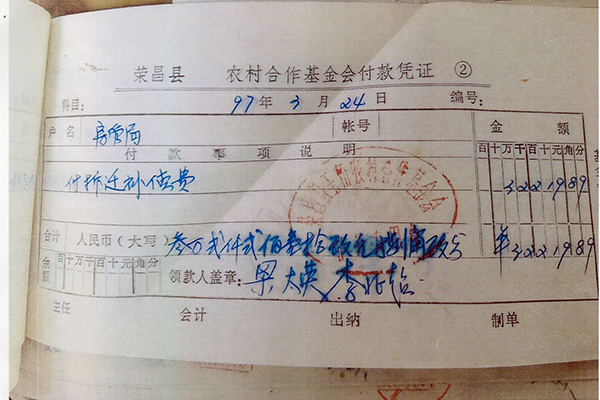 梁太英到当年存款的荣昌县农村合作基金会(现农村商业银行)调取票据,该行汤经理查阅后回复说,1997年的凭证已经销毁。