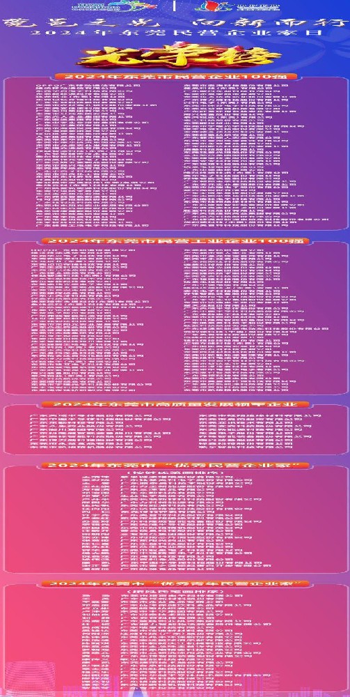 2024年东莞市民营企业100强名单