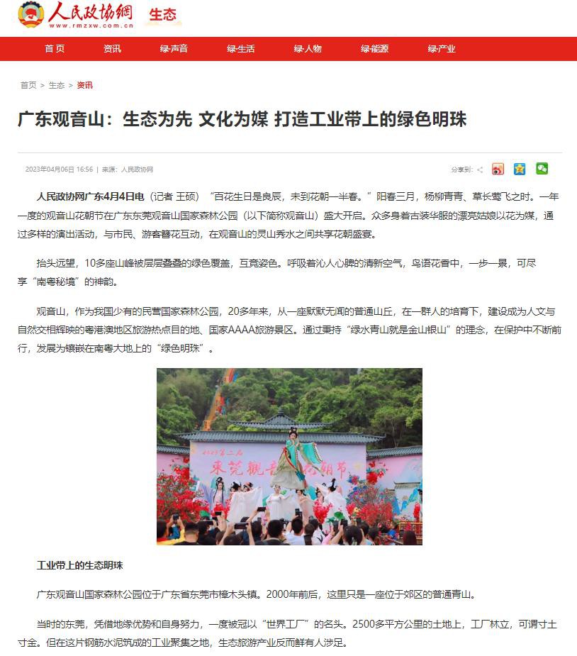 人民政协网《广东观音山:生态为先文化为媒 打造工业带上的绿色明珠》