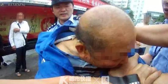 最后,民警只能强制将老伯带下了车,并要求他配合工作。