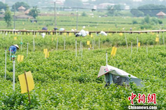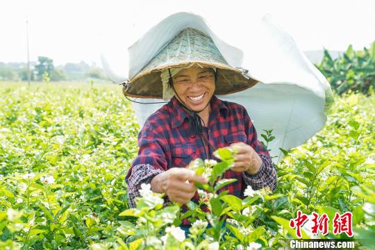 广西横县:茉莉花采摘季到来 花农“全副武装”摘花