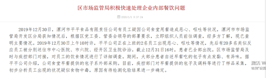 原标题:《区市场监管局积极快速处理企业内部餐饮问题》 来源:漯河经济技术开发区网站 ![]() 2019年12月30日,漯河市平平食品有限责任公司有员工疑因公司食堂用餐造成恶心、呕吐等状况,漯河市市场监管局开发区分局获知情况后,根据区党工委、管委会领导的部署要求,立即组织人员前往调查,经多方了解,现已查明主要情况。2019年12月30日上午10时许,平平公司正在上班的2名员工出现恶心、呕吐等情况,先后有20多名类似反应员工被分别送往市中心医院、市六院、经开区卫生院诊治。截止12月31日16时,患者已全部出院。区市场监管局及时与疾控部门对接,对员工的饮食情况进行了详细调查。期间,大部分患者自述早餐吃的包子有点发黏、有异味,据平平公司介绍,公司食堂早餐提供的包子系外部采购。目前,疾控部门对早餐提供的包子及调料等进行了样品采集,初步分析员工出现的状况疑似食物中毒,原因有待检测化验结果进一步确定。 |