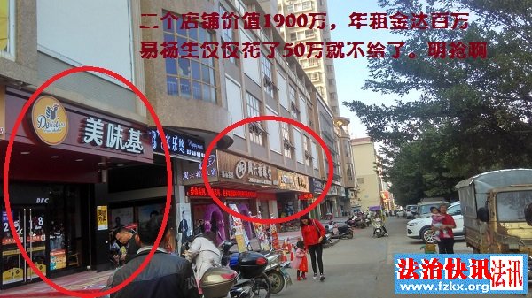 易杨生看中项目大门口左右二个门面,在刘芳平协调下,原购买者李瑞文只好原价673.496万元转让,易杨生仅仅交了50万元给李瑞文。2015年1月20日,李瑞文通过EMS给易杨生《债权转让通知书》,称将余款623.496万元商铺尾款转让给刘芳平。但易杨生不还给李瑞文,也不按照李瑞文的声明抵扣刘芳平欠款,就花50万元就霸占了这价值1900多万元的商铺,如今为“美味基”和周六福珠宝等,年租金高达100多万元。 易杨生为何如此霸道?从同一个审判员江萍下达的二份判决书可窥之一二:(2016)桂0422民初2026号判定:原告李旭江与被告藤县米兰公司于2015年2月3日签订的 《商品房认购书》 有效。 而对于2014年10月2日李瑞文再次交钱认购的五间商铺,(2016)桂0422民初2242号判定:原告李瑞文与被告藤县米兰公司签订的《商品房认购书》自本案发生法律效力之日起解除。为何如此?因为这五间商铺被易杨生看中,纳入了执行之中。 法院卖力:黑社会人员一起上阵执行为哪般 在这些案件几次上诉申诉均判定易杨生胜诉后,藤县法院进入执行程序。2016年4月18日裁定执行米兰公司的国贸中心一期第三层商铺6458.55㎡和二期2/3的商铺予以拍卖。 对此执行,李瑞文于2016年4月25日提交《案外人执行异议书》,称自己在2014年10月2日认购的五间商铺也被执行存在严重的错误,特依法提出异议。但执行法官不予理睬。 而对于商铺被执行,2015年11月26日,米兰公司将《房地产评估异议书》交到法院执行员手中。同年12月3日,米兰公司提交给法院《查封冻结异议书》,请求:1、法院依法解除对超执行标的额对应商铺的查封;2、请求法院将对被执行人与案外第三人在查封之前已经销售购买的商铺从查封标的物范围内扣除并优先另以该案申请人的其他财产按执行标的额价值列入执行标的物。 但这些请求法院均毫不理会。
