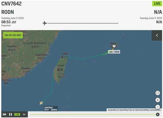 据“中时电子报”6月9日报道,这架美国海军的C-40运输机按照国际民航航线飞行,向台湾民航部门提出过境申请,接受台北飞航情报区内台北区管中心管制。台湾“中华战略学会”研究员张竞9日在接受采访时表示,美国军机的原航线是自冲绳经台湾东岸飞往泰国,由于当天受到台军打靶训练的影响,才借道台湾西岸。