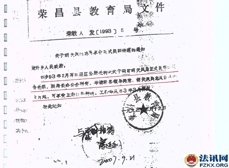 此时,荣昌县教育局并未让胡天凤知晓辞退的事情,而是继续任教。