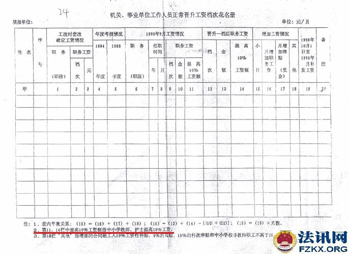 人事部 财政部 国家计划委员会《人薪发【1995】150号》(机关、事业单位工作人员正常晋升工资档次办法)、四川省人事厅 财政厅 计划委员会《川人工【1996】4号》文件,规定机关、事业单位正式工作人员中,凡1993年10月1日工资制度改革后,两年考核成绩均为称职(合格)以上的人员,可从1995年10月1日起在本职务(技术等级)所对应的工资标准内晋升一个工资档次。考核不称职(不合格),以及两年中只有一年考核称职(合格)的人员,不得晋升工资档次。胡天凤已享受其待遇。