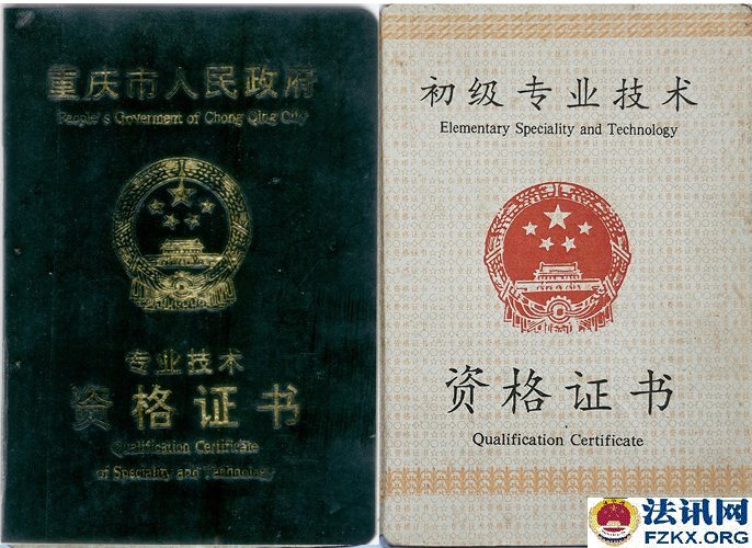 ▲图为:重庆市人民政府授予的小学一级教师专业技术资格证书