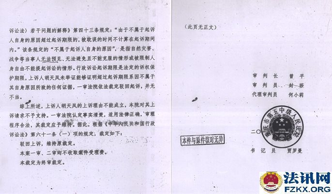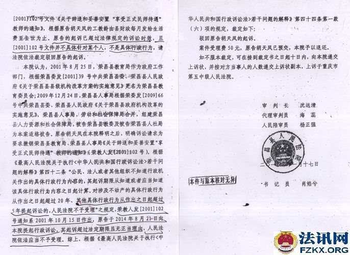 2014年荣昌县人民法院以超过诉讼法定期限且无正当理由为由,作出行政裁定:驳回起诉。二审法院也是驳回上诉、维持原裁定。