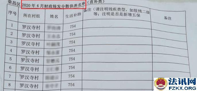 ▲图为:五保老人生活补助明细表