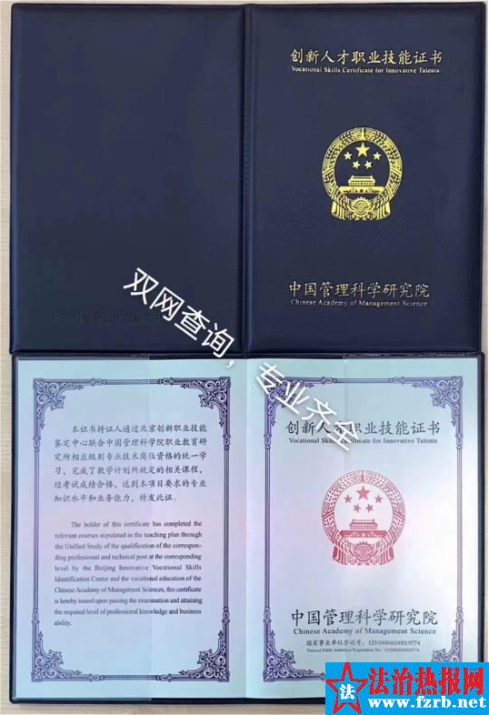 双章指的是在一张证书上同时印有“中国管理科学研究院职业教育研究所”和据“柒老师”称“第三方鉴定机构”——“北京创新职业技能鉴定中心”两个印章。双章被称为双网,即在上述两家机构的官网上可查到证书。
