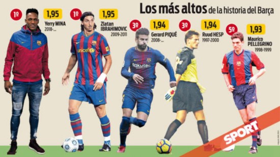 今年1月,当米纳从巴西帕尔梅拉斯来到西甲时,他光着脚走进诺坎普球场,出众的海拔依然让人过目难忘。而在整个西甲赛场,你也很难找出比他更高的球员——事实上米纳的身高能在西甲排到第7,而且在他前面的有三人都是门将。