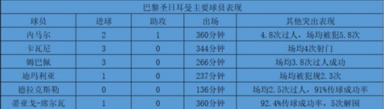 巴黎圣日耳曼主要球员合计在本届世界杯上打进了9个进球