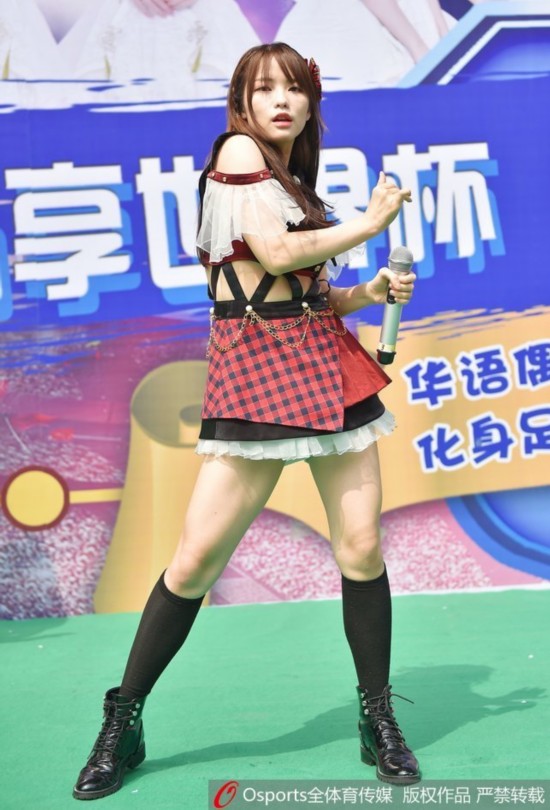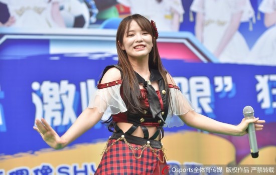 2018年7月4日,辽宁沈阳,SHY48女团化身足球宝贝为世界杯赛事热舞大秀青春活力。