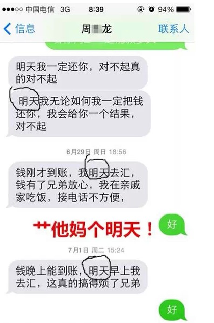 前同事龙哥借了楼主500块钱,从此楼主踏上了艰辛追债路。神奇的龙哥每天都能想出一个新理由耍赖,