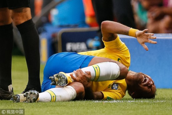 腾讯体育7月5日讯 作为夺冠大热门巴西的头号球星,内马尔在俄罗斯世界杯有着出色的表现,但随之而来的也是巨大的争议。在被对手侵犯之后,内马尔习惯于在草坪上翻滚,而据瑞士电视台统计,巴西前锋在俄罗斯世界杯的四场比赛里以及累计在草坪上躺了近14分钟。