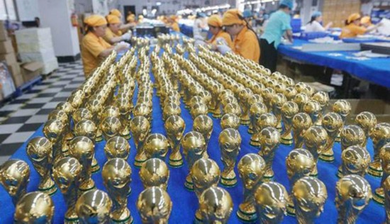 但很多企业也存在自主知识产权薄弱、技术研发能力匮乏等问题。世界杯帮助伟光走出了这个陷阱。伟光礼品业务经理简凯平说,在过去的24年里,世界杯的业务量只占到公司业务总量的10%,但世界顶级赛事的高标准、高要求,刺激这家企业不断加强研发设计和业务销售能力,坚持向“顶级制造”努力。