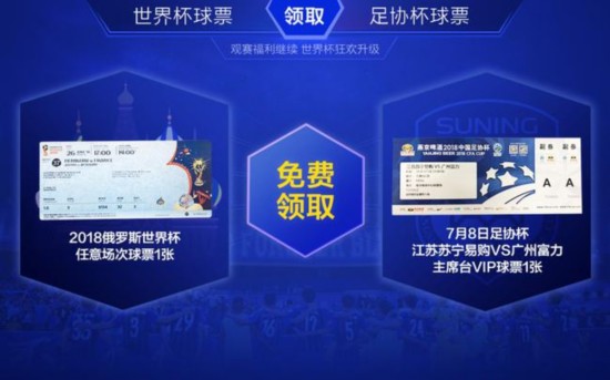 苏宁:凭世界杯门票领VIP球票 中高考生免费观赛