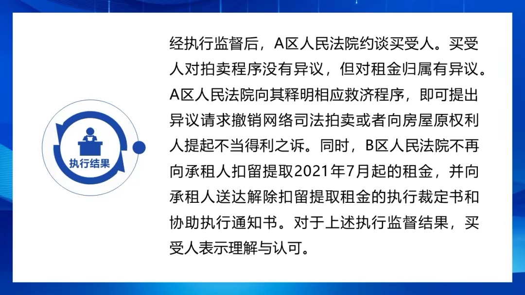 上海高院-上海上海市高级人民法院官方账号 网络司法拍卖是人民法院依法通过互联网拍卖平台,以网络电子竞价方式公开处置财产的行为,网络司法拍卖具有公开、高效、便捷的特点。《最高人民法院关于人民法院网络司法拍卖若干问题的规定》(以下简称《网拍规定》)对执行法院在网拍过程中承担的基本职责、瑕疵披露的具体内容、撤拍的责任负担等作出相应的规定。 而在司法实践中,人民法院对拍卖公告瑕疵如何认定及后续权利如何救济等问题上做法、尺度不一,争议较多。本文从拍卖公告瑕疵现存问题出发,依据“责任财产制”理论,对公告瑕疵重新分类,并提出“执行救济与诉讼”双轨制为基本理念的拍卖公告瑕疵纠纷的应对模式。该案例获评全国法院系统2022年度优秀案例分析二等奖。 甲公司申请执行乙公司等 金融借款合同案 裁判要旨 司法实践中,对拍品现状和权利负担未能有效查明、对已知瑕疵未能充分披露是否构成拍卖公告瑕疵的问题亟待解决;买受人能否依据对拍品实体权益排除其他法院对拍品孳息的强制执行以及买受人如何救济的新问题亟待厘清。本案基于法律规定及相关司法解释,并结合实务操作,探索上述问题的解决方法,对今后类似案件起到了一定的指引作用。 关键词 公告瑕疵 / 带租拍卖 / 责任财产 / 救济 案例撰写人 蒋宏,上海市高级人民法院执行局副局长兼执行综合处处长,三级高级法官。 徐毓杰,上海市宝山区人民法院执行局,四级法官助理。 01 基本案情 甲公司与乙公司等金融借款合同纠纷一案,因被执行人未履行相关法律义务,申请执行人申请要求拍卖被执行人乙公司名下某房屋。2019年5月22日,A区人民法院执行干警至涉案房屋张贴拍卖公告及拍卖裁定书。 另查,因被执行人乙公司在B区人民法院有未了民事债务,故B区人民法院出具执行裁定书、协助执行通知书扣留提取被执行人乙公司在承租人处应收的2014年至2022年的租金(租金支付方式为每年度支付下一年度的租金)。承租人于2019年11月、2020年7月向B区人民法院支付两个年度的租金。 2020年4月15日,A区人民法院启动涉案房屋网拍程序,拍卖公告中载明涉案房屋“带租拍卖”,但未披露相关租金已被B区人民法院冻结并提取的信息。买受人丙公司于同年6月16日竞买成功。A区人民法院于同年8月24日裁定将涉案房屋过户至丙公司。同年11月12日,买受人完成过户登记手续,已取得新的产权证。A区人民法院于同年12月18日向B区人民法院发函告知拍卖情况。 丙公司向上海市高级人民法院执行局申请执行监督:一是解除B区人民法院对涉案房屋租金冻结的执行措施;二是自2020年7月至2021年6月的租金应归其所有,但上述租金已被B区人民法院强制扣划并发放。 02 执行结果 03 拍卖公告瑕疵困境纾解图示 04 案例评析 1. 拍卖公告应当记载的系针对拍卖标的物上附着的用益物权、担保物权等案外人享有的权利,执行法院不仅需要形式审查,更需要进行实质审查,对于已知的权利负担,应当通过拍卖公告予以公示而未公示,构成拍卖公告的严重瑕疵。 2. 债务人原则上以其全部财产为全部债务的履行提供一般担保,为全部债务的履行提供一般担保的财产即所谓的“责任财产”。对于普通金钱债权的强制执行,在针对特定财产采取执行措施之前,执行法院需要先行判断该财产是否属于责任财产。 3. 如果拍卖公告构成严重瑕疵,当事人及利害关系人有权选择是否向执行法院提出撤拍的异议请求。若依据《网拍规定》第三十一条,提出撤拍的,对于当事人的实际损失,可以通过国家赔偿程序予以救济。不提出撤拍的,应采用“执行救济与诉讼”双轨制: 一是通过执行程序寻求救济,即申请执行监督或提出执行异议,达到尽快停止违法行为,减少利益受损的目的,最大限度发挥执行救济措施的制度价值; 二是向相关责任主体,寻求诉讼救济,以弥补实际的损失。 (评析部分仅代表作者个人观点) 05 法条链接 一、《最高人民法院关于适用〈中华人民共和国民事诉讼法〉的解释》 第四百九十九条 人民法院执行被执行人对他人的到期债权,可以作出冻结债权的裁定,并通知该他人向申请执行人履行。 该他人对到期债权有异议,申请执行人请求对异议部分强制执行的,人民法院不予支持。利害关系人对到期债权有异议的,人民法院应当按照民事诉讼法第二百三十四条规定处理。 对生效法律文书确定的到期债权,该他人予以否认的,人民法院不予支持。 二、《最高人民法院关于人民法院网络司法拍卖若干问题的规定》 第十二条 …… 拍卖公告应当包括拍卖财产、价格、保证金、竞买人条件、拍卖财产已知瑕疵、相关权利义务、法律责任、拍卖时间、网络平台和拍卖法院等信息。 第十四条 实施网络司法拍卖的,人民法院应当在拍卖公告发布当日通过网络司法拍卖平台对下列事项予以特别提示: (一)竞买人应当具备完全民事行为能力,法律、行政法规和司法解释对买受人资格或者条件有特殊规定的,竞买人应当具备规定的资格或者条件; (二)委托他人代为竞买的,应当在竞价程序开始前经人民法院确认,并通知网络服务提供者; (三)拍卖财产已知瑕疵和权利负担; (四)拍卖财产以实物现状为准,竞买人可以申请实地看样; (五)竞买人决定参与竞买的,视为对拍卖财产完全了解,并接受拍卖财产一切已知和未知瑕