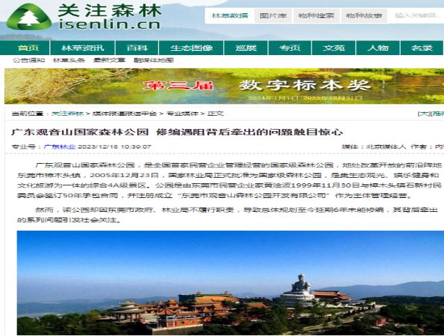 | 东莞四单位屡被网络曝光,竟上了光荣榜 独立撰稿人 李海波 据南方日报报道 3月14日下午,东莞市2024年度工作总结大会召开。大会公布2024年度工作优秀园区、镇(街道),2024年度工作优秀市直单位等荣誉榜。 发布的光荣榜里,2024年度工作优秀市直单位中,市检察院为社会建设类,经济建设类有市自然资源局。樟木头镇被评为2024年度工作良好镇,市林业局在光荣榜里是2024年度工作良好市直单位的经济建设类。 让我们看看2024年在网络里的这几家单位情况吧。 东莞市检察院被曝公益诉讼二年没动静 ![]() 今年2月21日,多家网络曝出《全国人大代表和东莞市检察长开展巡林工作的新闻引关注》,文章针对 19日《羊城晚报•羊城派发布了》记者秦小辉、通讯员莞林采写的新闻《全国人大代表和东莞市检察院检察长率队开展巡林工作》指出:沈丙友检察长说“要持续推进“林长+检察长”协同机制,加强与林业、公安等部门协作配合,严厉打击各类破坏森林资源的违法犯罪行为。要充分发挥公益诉讼检察职能,及时介入调查,督促相关责任主体依法履行职责,修复受损生态环境。”如此说法是令人赞扬的,但对于观音山的毁林问题,东莞市检察院做到及时了吗?都2年了还没有一个调查结果,怎样能充分发挥公益诉讼检察职能呢?严厉打击各类破坏森林资源的违法犯罪行为,“林长+检察长”协同机制落到实处了吗?只做表面文章甚至是“指鹿为马”,算是履职吗? 2023年1月15日,广东观音山国家森林公园向最高检递交了《关于对广东观音山国家森林公园生态环境遭受巨大破坏的情况反映》,反映诉求为:恳请检察机关履行法定职责,提起环保公益诉讼。2023年3月2日,东莞市检察院告知观音山公园:其提供的公益诉讼线索转该院公益诉讼检察部门进行核查。8月16日东莞市人民检察院电话回复观音山公园:反映的问题,相关部门已经立案了。 ![]() 9月20日,东莞市检察院材料已转该院第六检察部审查处理。 ![]() 9月21日,澎湃新闻发布《检察院回应4A级景区反映生态遭严重破坏:已立案调查核实》。 2023年11月15日东莞市人民检察院电话回复观音山公园:案件已经立案,案件还在审查办理中,对于结案时间要看案件后续办理的程度。因为公益诉讼,其实可能更加多的是涉及到一些政府部门,他的一个行政职能,更多的是一种行政行为。所以的话呢,就是说怎么说呢?是我们延伸的一种法律监督的手段。 ![]() 观音山公园向最高检递交的毁林现场图明确的展示了观音山国家森林公园遭到了严重的破坏,依据相关规定,对此提请了检察院进行公益诉讼,但至今过去了2年有余,东莞市检察院都没有进展。 对此,作为2024年度工作市检察院为社会建设类优秀市直单位,是怎样的社会建设的呢? 市林业局被曝多发打压国家森林公园 多年来东莞市林业局在媒体中可谓是高频繁亮相,在观音山国家森林公园遭遇的种种蒙难,都离不开东莞市林业局的影子。 ![]() 2024年初《文艺世界》杂志发表的《首家民营国家森林公园广东观音山引发热议》,显示了多家媒体对观音山国家森林公园遭遇的拟被摘牌予以关注。 ![]() 事实上,对于广东观音山国家森林公园自然保护地资质撤销,全国全网数百家网站予以发声:《拟被撤“国家级”招牌,广东观音山公园:希望保留》、《遭遇地方多年卡脖,首家民营国家森林公园竟不再保留》、《全网关注的观音山不再保留自然保护地,专家:程序违法、实体违法》《历史遗留问题不决 全国首家民营国家森林公园面临摘牌》、《广东观音山国家森林公园自然保护地资质撤销引关注 专家发声力促重新纳入》、《广东观音山国家森林公园自然保护地事件 公众呼吁信息公开》、《广东观音山国家森林公园作为国家自然保护地具有标杆性意义》......该事件可谓引起了广大网友和诸多法律人士、媒体人愤慨,纷纷为此鸣不平,认为是东莞地方政府对民营经济的极力打压造成的不良后果,对东莞的营商环境造成了严重的伤害。 ![]() 在此事件中,东莞市林业局显然是起到了至关重要的作用。媒体认为:观音山公园未能如期提交《广东观音山国家森林公园总体规划修编(2019-2030)》,未能解决一些历史遗留问题,根本原因和责任不在观音山公园,而是市林业局故意造成的结果。 ![]() 中华网报道《观音山森林公园《规划》修编遇阻,只因那只“有形的手”》就说明一点问题:一般理解,《规划》修编就是一个流程性和事务性的工作,按照国家、部门、行业的法律、法规和标准,请各部门配合专家团队进行实地测量、编制,然后上交各部门审验、盖章、通过即可。然而东莞市林业局对观音山公园修编所需事项多次拒绝,不成立的理由均是该公园四界不清。而从东莞市人民政府批准的观音山森林公园,到国家林业局批准为国家级森林公园,及广东省林业局批准的总体规划,广东观音山国家森林公园均有明确的四界范围,均明确为9264.9亩,何来的四界不清? ![]() 国家林草局宣教中心主办的网站发布的《广东观音山国家森林公园 修编遇阻背后牵出的问题触目惊心》曝光:在观音山观音山申请修编,2018年10月至2020年5月期间,湖南省林业调查规划设计院、北京时代天元旅游开发有限公司应广东省林业局邀请并接受观音山公司委托曾先后四次到东莞市林业局希望配合勘界工作,东莞市林业局均以“四界不清”为由拒绝履行