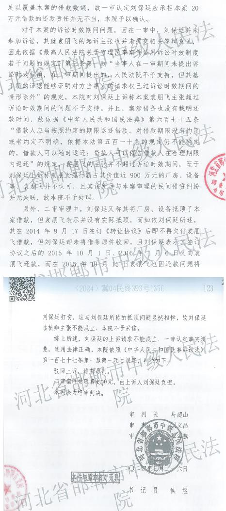 | 千万厂房被抢占抵债后仍被判决还款,馆陶县农民企业家刘保廷迎来曙光 独立撰稿人 李海波 河北馆陶县的刘保廷的人生可谓跌宕起伏:从一个拥有二厂房的民营企业家到打工为生,从千万家产到无家可归,从开奥迪车到开老年代步车…… 这一切的变故源于借了高利贷还了只有4万时被债主带人强占厂房住房。 借款36万元还了只剩几万 被强占价值千万厂房作为抵债?! 刘保廷原本是一个农民企业家, 本世纪初在大刘庄村村西占地8亩建了赛恩斯饲料厂,2014年1月又在本厂院内建设馆陶县福瑞轩金属丝科技有限公司。 ![]() 价值200多万元的厂房设备情形,被强占后不知所踪 公司经营期间,刘保廷向馆陶镇刘沿村人袁某飞借了36万元钱,利息五分,每月结息,没约定还款时间。到2014年底,刘保廷分三次还了10万元;2015年10月1日前又分4次还了11万元。但每次还款后,他要求袁某飞归还借条,袁总是说等彻底还清了才能把欠条给他。 ![]() 袁某飞以还欠其本息合计20万元为由,于2014年9月17日强迫刘保廷签订了《转让协议》,将自己的工厂场地和机器设备作价30万元,用于偿还欠袁某飞的债务。 此前,经山东舜天信诚资产评估有限公司对该厂资产评估:赛恩斯饲料厂部分固定资产价值8866700元。 ![]() 2014年8月做出的《资产评估报告》:部分资产价值886万6700元 2015年1月3日,刘保廷正在医院输液,袁某飞找到医院,拿出一份提前打印好的合同说,不管死活今天不签字就把机器当废铁卖掉。刘保廷输完液到了袁的办公室,看完合同后表示,整个厂子抵押给你这点钱不合适,不签。袁某飞就说不签就出不了这个门!僵持了几个小时,刘保廷身体经不起折腾,为了保命才不得不在合同上签了字。合同大意是:如一年内还不清袁某飞的借款,就以厂房和机器设备抵债。 ![]() 2014年除夕下午,袁某飞带着一帮社会人员,开着大货车、吊车赶到赛恩斯饲料厂,以讨债为名,在刘保廷的大门和墙上挂着两条红色条幅,上面写着“刘保廷还我血汗钱”, 致使公路上堵塞500米远,一直闹到大年初一凌晨一点。 刚过完年,袁某飞就逼刘保廷还钱,刘保廷把无奈之下自己仅有的3亩地卖了,还了袁某飞11万元。 当年夏天,因家中房屋倒塌,刘保廷一家搬住进赛恩斯饲料厂生活居住。 在11间住房外,刘保廷用围栏与厂房隔开。2015年9月,袁某飞让刘保廷的儿子刘宪华(金属拉丝科技公司法人)用贷款给他买辆车,算是还利息,刘保廷当时没有同意。 2015年10月15日,袁某飞在债务尚未到期的情况下,开车到刘保廷的赛恩斯饲料厂,问刘凑够钱了没,刘说没凑够,袁某飞就轰赶刘保廷和家人出去。刘刚说了一句说:“朋飞,我就欠你这点钱,你就把我撵出去啊 ?”袁某飞随后拿起茶几上的一个玻璃烟灰缸,砸到了刘的头上,还一脚踢在刘保廷裆部,致其当场晕倒。 刘保廷的家人打电话叫120救护车把刘保廷拉往医院后,袁某飞还说:“不服的话,我把你们全家都揍喽,你们愿意去哪告就去哪告!” 晚上7点左右,刘保之妻张巧文、之女刘新霞、刘新厂从医院看护刘保廷后回到厂里,袁某飞带着其弟弟袁跃飞和两个社会人员, 再次来到厂里,拿出催泪瓦斯强行驱赶刘的家属离开厂子,致使张巧文当场晕倒。 刘保廷受伤后在馆陶县人民医院住院治疗12天,支付医疗费6086.80元。老伴张巧文在中医院也检查出呼吸道感染。 刘家人报警后,派出所派人到场,简单问了问情况就走了。 刘保廷住院期间,袁某飞再次将赛恩斯饲料厂大门锁住, 并用自己的轿车在里面顶住大门不让人进去,还在院子里吊了一个活动板房,让自己的手下老爹住在里面, 说这个厂子是他家的了。 张巧文说,厂子里还有她们家的玉米1700斤左右,水泡的都发霉了;孙庄的邻居家也有几万斤玉米在厂子里放着,邻居去拉玉米的时候,袁某飞催着拉玉米的工人赶紧离开。 某日,村民刘建杰想往厂里停车, 发现们打不开,就在厂子外面喊刘保廷儿子宪华的名字,袁跃飞从厂里出来后于刘建杰发生争执,于是,操起一根铁棍把刘建杰打伤,事后经法医鉴定,刘建杰小腿骨骨折,构成轻伤。然而,神通广大的袁某飞竟然没受到任何处罚。 ![]() 福瑞轩金属丝科技有限公司部分设备(来源于邯郸市中级法院证据) 2018年夏天,袁某飞将厂房租给大刘庄的刘某,让其在厂里收购粮食。 至今,该厂的大门仍被袁某飞用一把大铁锁锁着,而围墙因年久失修出现多处倒塌。院里更是杂草丛生、蛇鼠乱窜。 4人喷射催泪瓦斯强占厂房致刘家人无家可归 仅一人被判刑 2015年11月9 日,馆陶县公安局行政处罚决定,对袁某飞行政拘留8日,并处罚款200元。但该处罚并未得到实际执行,经刘保廷多次信访,2017年4月5日才实际执行。 上千万的企业被霸占了,一家人无家可归而一直在外租房,没有生活来源。而打伤和使用催泪剂的四人仅被行拘了事,让刘家人感到绝望。针对袁某飞涉嫌侵占公民财产犯罪一事,刘保廷多次向馆陶县公安局报案和反映,请求该局立案、依法追究袁某飞等人的刑事责任,但是馆陶县公安局却以经济纠纷为由,迟迟不予刑事立案,并作出《不予立案通知书》。经过行政复议,馆陶县公安局作出决定意见仍维持不予立案。刘保廷不服,向邯郸市公安局申请复核。 不服该处罚,刘新芝走上了信访之路,刘新芝不堪精神打击,两次服毒自杀未遂。 2017年8月,邯郸市公安局法制支队受理了该案。 2017年8月17日,袁某飞被传唤到案。2017年8月,袁某