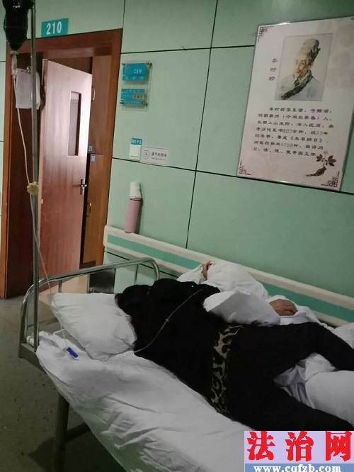 景宁县某医院呼吸肿瘤科住院部患者徐某某躺在病榻上。