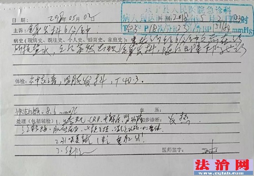 在诊所输液期间,旁人看着不对劲,赶紧转送景宁县某医院急诊科抢救治疗,在送往医院途中患者还发生晕厥。当天上午10时30分患者在医院急诊科测量体温高烧40.3摄氏度,后来,在景宁县某医院呼吸肿瘤科住院持续发高烧,体温39.5摄氏度。尔后,徐某某体温一直持续发烧10余天时间38.6摄氏度不退。住院19天花掉医疗费近2万元,出院当天早晨体温37.6摄氏度,患者仍有发热。治疗结果未愈。出院医嘱:送上级医院继续诊疗。