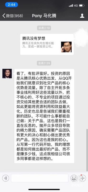 文章里,作者“批评”了腾讯正在丧失产品能力和创业精神,变成一家投资公司