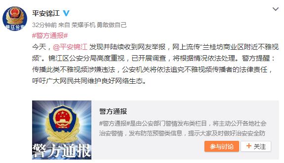 提醒:传播此类不雅视频涉嫌违法,公安机关将依法追究不雅视频传播者的法律责任。