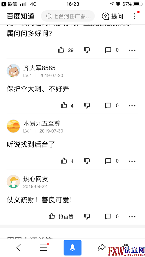 百度“七台河任广春”是这样的。 删帖啊,法讯君的原则是只要证明帖子不属实就可以,违法的事情我不做!七台河市公安局新兴分局的函件如果是真的,就请调查核实后说明帖子是虚假事实才可以,而不是调解了就删除,另外国庆时地方和谐稳定不是一帖子就影响的,而是真有涉黑性质的事情才破坏稳定!! |