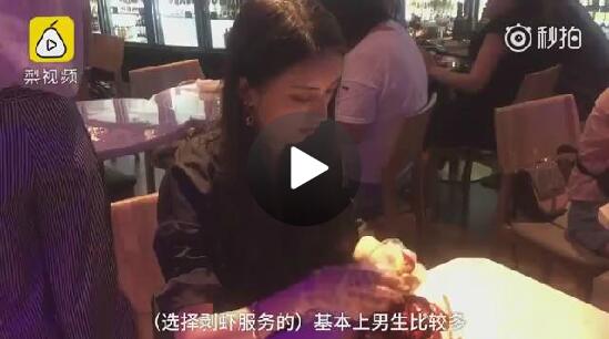 【兼职剥小龙虾月入万元!老板:因为顾客忙着玩手机】 视频截图 美女兼职剥小龙虾,顾客:有点尴尬 上海一家餐厅推出专人剥虾服务,老板称一些顾客边吃龙虾边玩游戏,于是招募了剥虾员工,加收15%服务费。 不过也有顾客质疑是噱头。 兼职大学生小何说,“选择剥虾服务的基本上是男生,努力的话,一个月工资大概会达到五位数”。 不过也有顾客质疑是噱头。 兼职大学生小何说,“选择剥虾服务的基本上是男生,努力的话,一个月工资大概会达到五位数”。