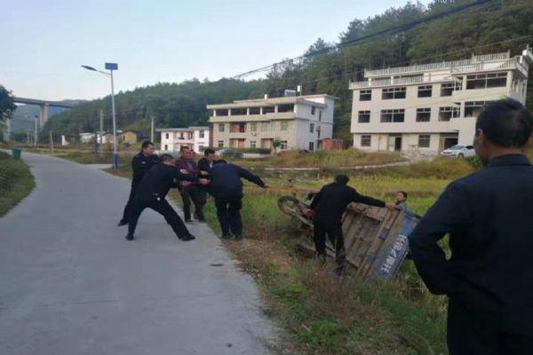 中华法制报讯(通讯员 刘春)12月4日,江西兴国县公安局兴莲派出所民警在开展警民共建平安校园活动返回途中,看到一辆三轮车“三脚朝天”,侧翻在水田里。 该所民警见状,立即上前查看有没有人员受伤。所幸只是车子翻了,没有人员受伤。民警对现场进行仔细,寻找最佳救援方式,发现水田的位置距离路面落差有一米多高,田里有水,无法直接使劲推出。于是,该所民警找来两根绳子,并叫上附近群众帮忙。经过众人十余分钟的努力,终于将这个大家伙拉上路面。见到车子拉起来了,车主使劲向民警道谢。经了解,这个三轮车当天是带病工作,刹车单边,会车的时候没有控制好车速,一刹车,就翻到水田里了,幸好遇到了路过民警。 该所民警再三叮嘱车主,要及时修好车子,控制车速,安全驾驶。 |