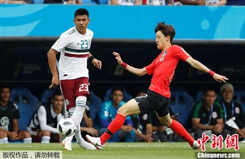 中新网6月24日电 北京时间23日晚,2018俄罗斯世界杯F组次轮韩国队与墨西哥队的比赛在顿河畔罗斯托夫打响。墨西哥队凭借上半时贝拉点球命中,以及下半场埃尔南德斯反击得手,伤停补时期间,孙兴民远射为韩国队扳回一球,最终墨西哥2-1战胜韩国队。