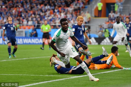 北京时间6月24日,世界杯H组小组赛,日本vs塞内加尔,比赛第70分钟,塞内加尔球员瓦古塔接队友传球,插上一脚补射破门。