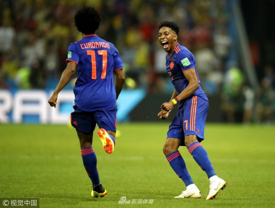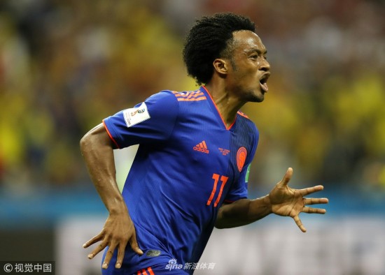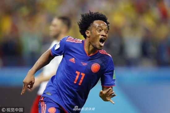 北京时间6月25日,世界杯H组小组赛,哥伦比亚vs波兰,比赛第75分钟,夸德拉多单刀破门。