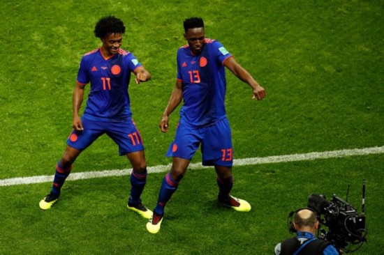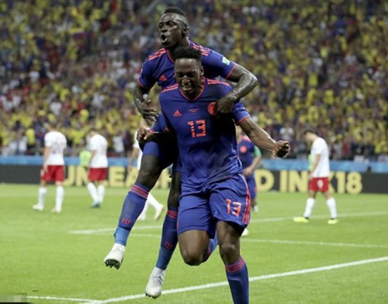 法尔考庆祝进球 北京时间6月25日2时(俄罗斯当地时间24日21时),世界杯H组第2轮第2场在喀山展开较量,哥伦比亚3比0完胜波兰,与日本和塞内加尔差距缩小为1分,连败的波兰成为首支出局的种子队。阿吉拉尔因伤被换下。J罗助攻,巴萨中卫米纳世界杯处子战破门。下半时,队长法尔考打进世界杯处子球,J罗助攻夸德拉多单刀破门。