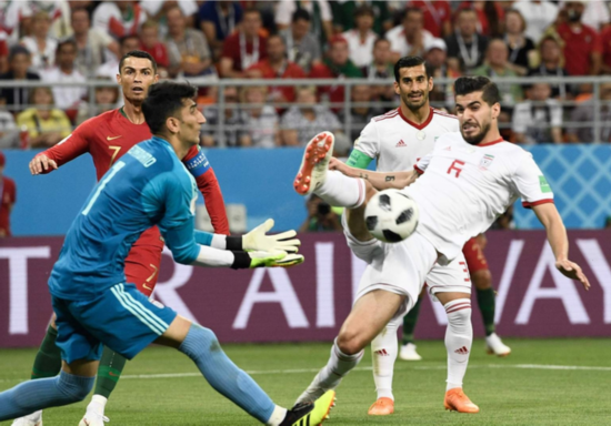 伊朗两将内讧 伊朗和葡萄牙的比赛,事关两队的出线前景。在这样一场生死大战中,伊朗队却出现了不和谐的一幕,两名球员竟在场上发生了内讧。 比赛第9分钟,葡萄牙后场长传禁区,伊扎图拉希解围时和门将贝兰万德撞在一起,这给了葡萄牙队禁区弧顶处射空门的机会,可惜葡萄牙球员若昂-马里奥没能抓住机会,将皮球打高。