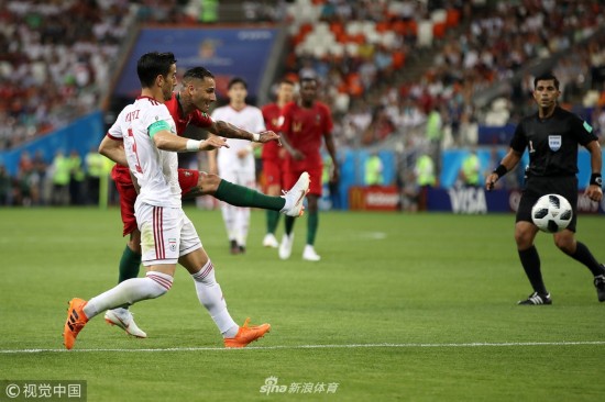 北京时间6月26日,世界杯B组小组赛,上半场比赛,夸雷斯马在右侧禁区外用一脚外脚背弧线攻破了伊朗的球门。