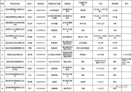 商报全媒体讯 (椰网/海拔手机端记者 唐伟杰)产业扶贫是贫困人口脱贫的主要途径和根本之策。澄迈县充分发挥产业扶贫在精准扶贫的作用,将“企业/合作社+贫困户”等方式作为产业精准扶贫有力抓手。 据悉,该县部分企业、合作社勇于担当,作为产业扶贫承接主体,在带动贫困户脱贫致富、发展贫困村村集体产业等脱贫攻坚行动中发挥了积极作用,在帮助贫困户发展生产、增收脱贫等方面取得了明显成效。 为表扬和支持该县带贫主体企业良好发展,合力助力脱贫攻坚,澄迈县农业农村局和澄迈县扶贫工作办公室日前公布了澄迈县带贫主体名单及可销售产品,同时倡议各机关企事业单位、人民团体、爱心人士采购带贫主体扶贫农产品,奉献一份真情,贡献一份力量! 附件:澄迈县带贫主体名单 ![]() ![]() ![]() ![]()