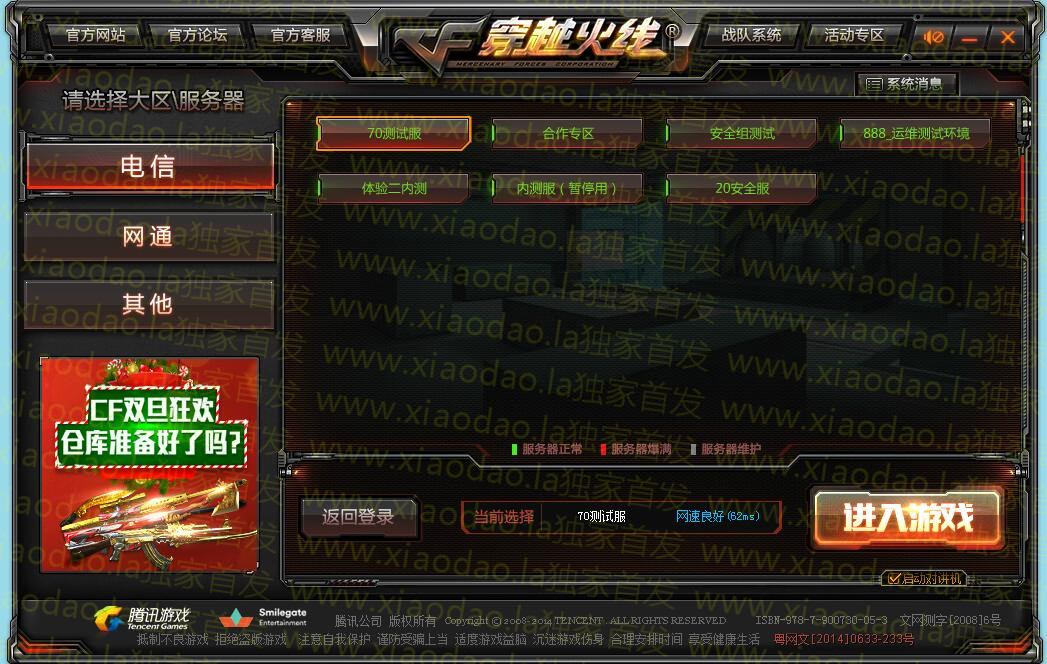 70测试服 和正常国服没有什么区别 登录不送点卷 可以开游戏