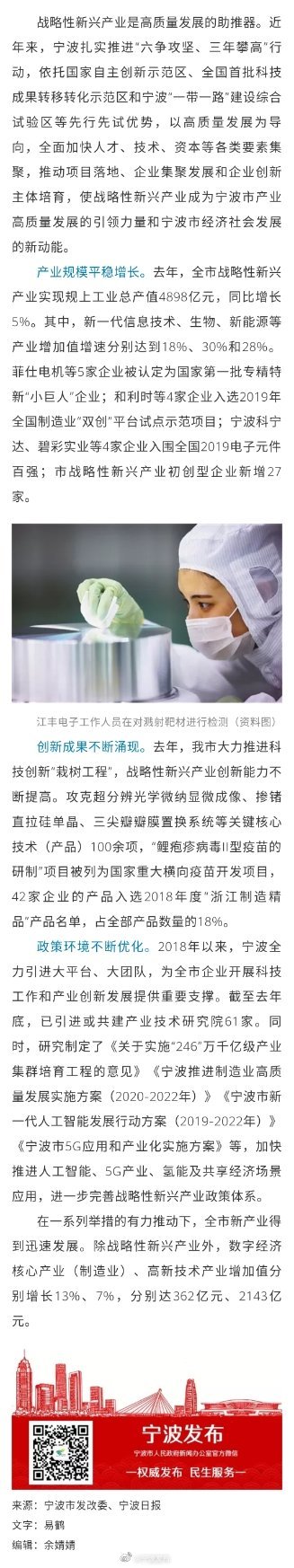 宁波战略性新兴产业增加值破千亿大关 增1120.9亿元