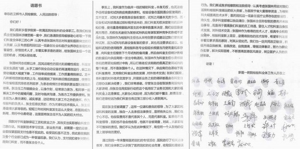 河南新乡医学院第一附属医院检验科室人员的请愿书
