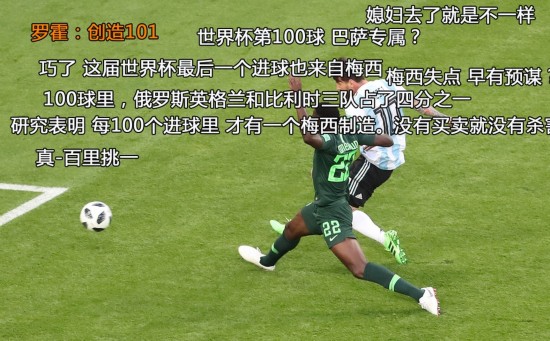 2、梅西打进世界杯第100个进球——罗霍:创造101。