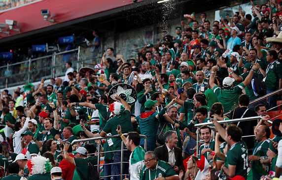 瑞典3球领先已让比赛再无悬念,看台上的墨西哥球迷纷纷掏出手机收看德国同韩国的赛况,韩国在伤停补时进球让墨西哥球迷欣喜若狂。墨西哥球员齐聚球场内等待最后结果。最终德国爆冷输球,墨西哥输球仍获得小组第二晋级。