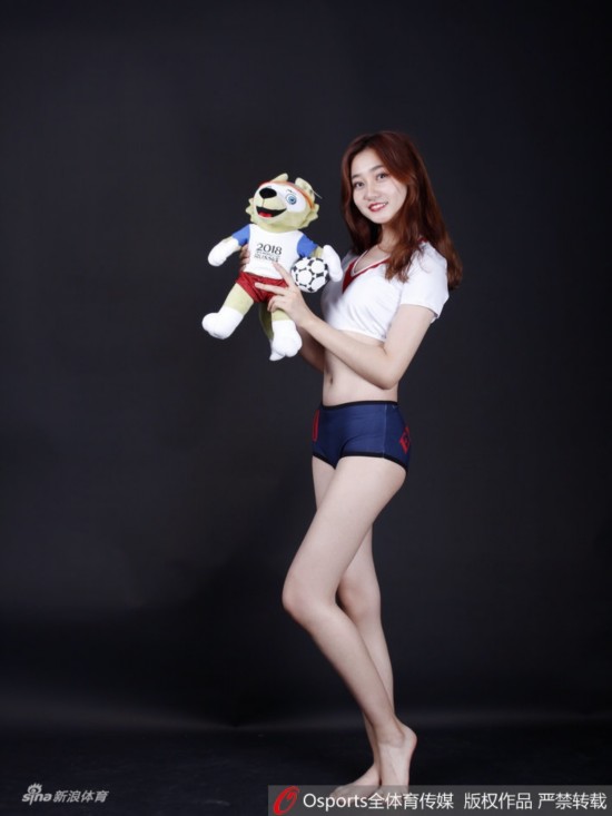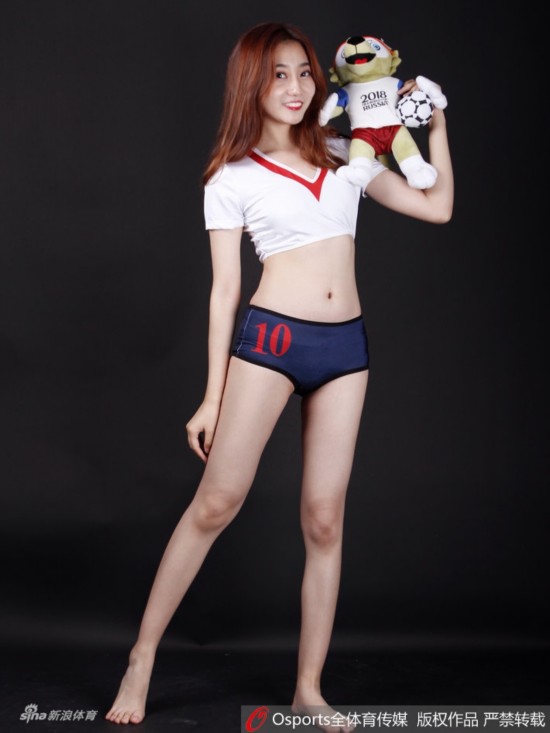 2018年6月28日,2018年俄罗斯世界杯G组:英格兰vs比利时,Lucky team中国体育宝贝拍摄性感写真为比赛打call。