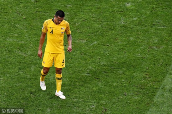 同样黯然告别世界杯的还有一位老将,那就是澳大利亚队的卡希尔。38岁的他作为一名前锋,无论身体对抗还是速度爆发都已经大不如前,但卡希尔依然是“袋鼠军团”的标志——这位老将过去3届世界杯都有进球,而且是澳大利亚队史上的头号射手。