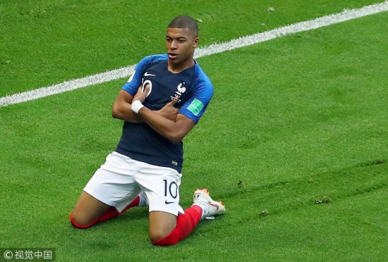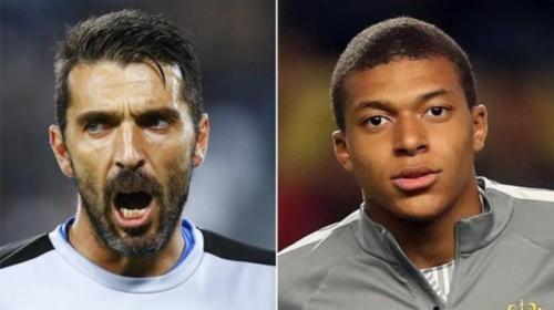 小时候的姆巴佩和享誉世界的亨利大帝合影。